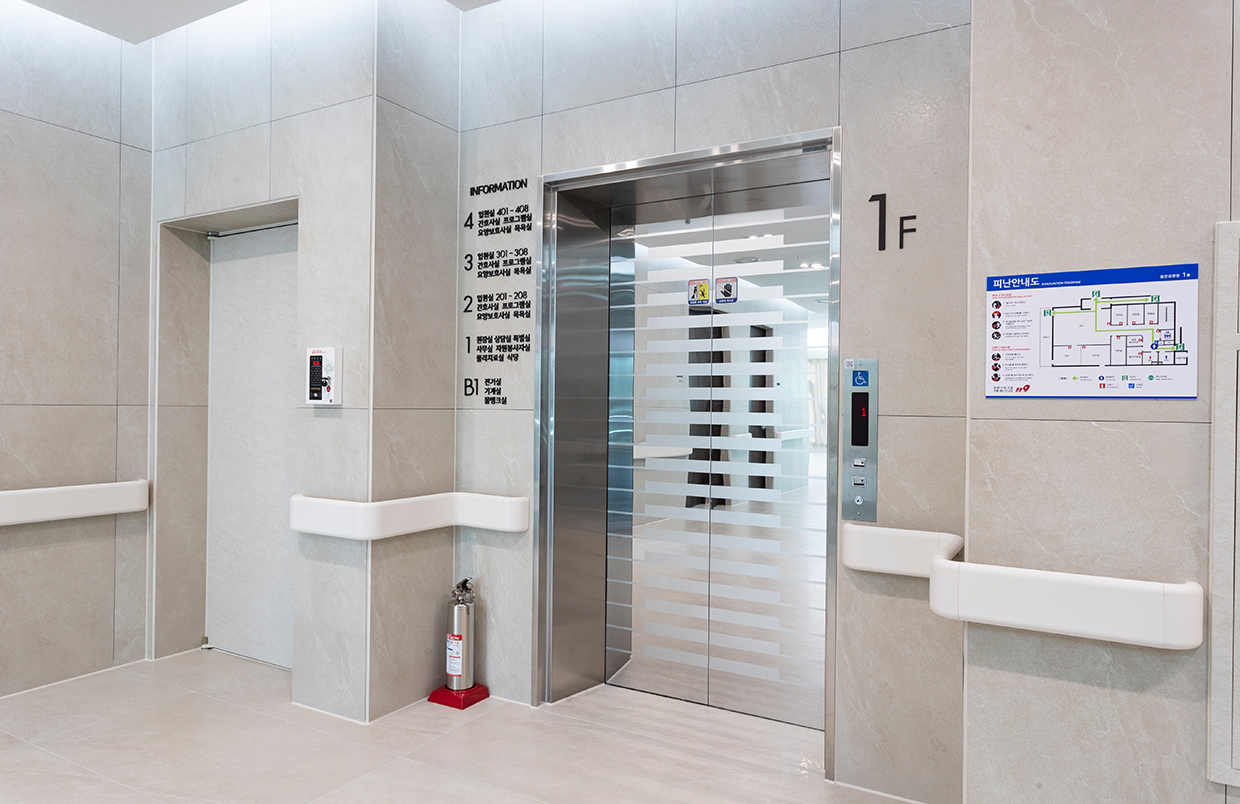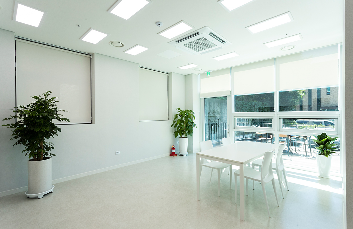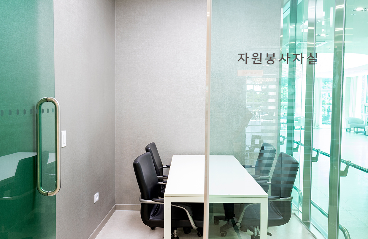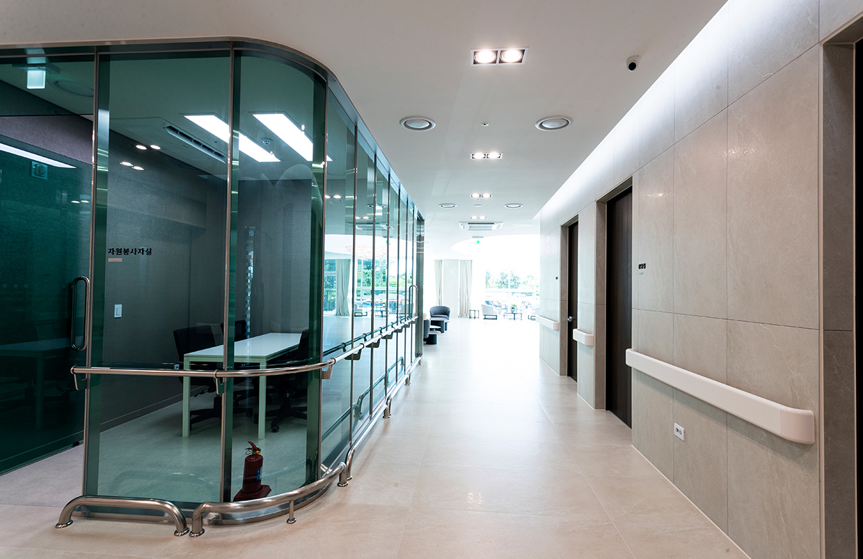 | 1F | 사무실 , 원장실 , 상담실 , 특별실 , 물리치료실 , 자원봉사자실 , 로비&카페, 식당, 조리실, 장애인화장실 (남,여) |